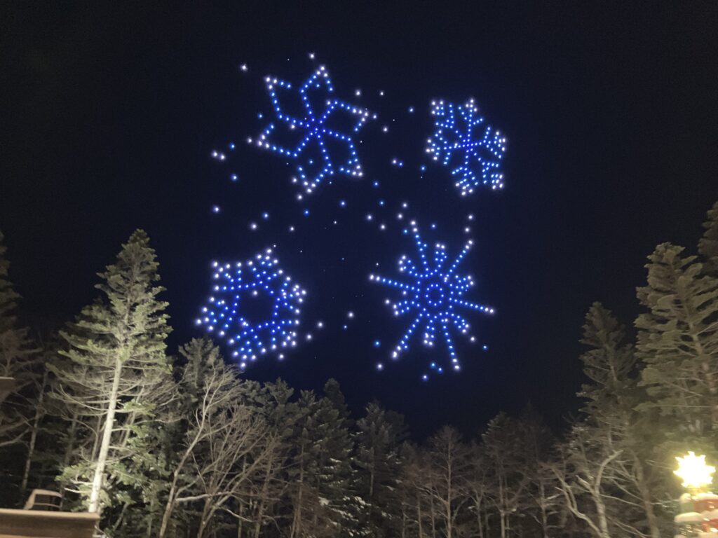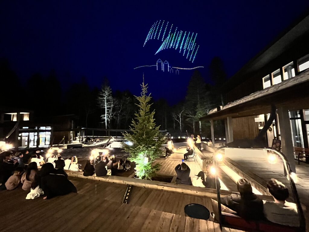 上記写真は星野リゾート トマム様にて、リゾート滞在をさらに楽しむために企画された、日本初(※1)となるリゾート施設での常設型ドローンショーの様子です。